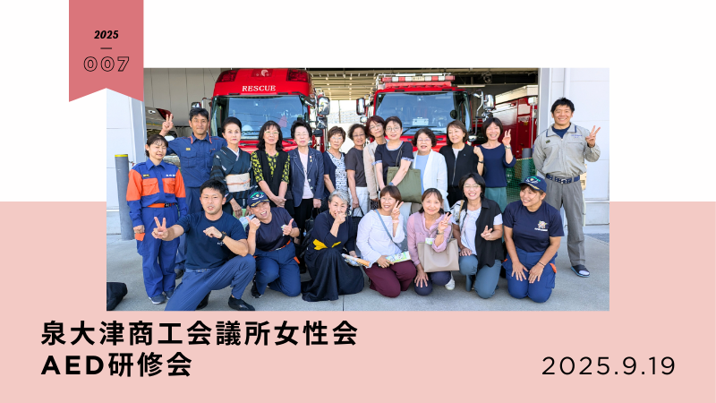 女性会では、継続的に「防災セミナー」を開催し、正しい情報や対処について学んでいて、今年度は、9月19日(金)に、泉大津市消防署で「AED研修会」を受講しました。